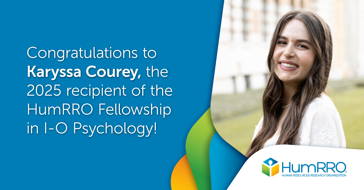 HumRRO is excited to announce that Karyssa Courey is the 2025 HumRRO Fellowship in Industrial-Organizational (I-O) Psychology recipient. Courey is an I-O doctoral candidate at Rice University, working toward completing her dissertation, “Communicating Statistical Uncertainty to Organizations: Comparing Bayesian and [...]