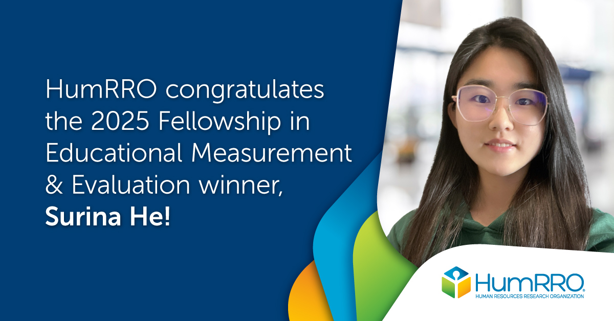 HumRRO is pleased to announce Surina He as the 2025 recipient of the HumRRO Fellowship in Educational Measurement and Evaluation. He is a doctoral candidate in Educational Measurement at the University of Alberta, Canada, and is expected to defend [...]
