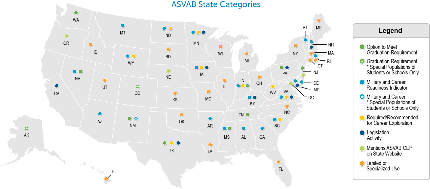 Through assessments of knowledge, skills, and abilities (KSAs), vocational interests, and work values, the ASVAB CEP helps students identify occupations that suit them well and offers them resources to create post-secondary readiness plans. Thus, ASVAB CEP can help states meet federal reporting requirements stipulated by the ESSA and Perkins legislation.
