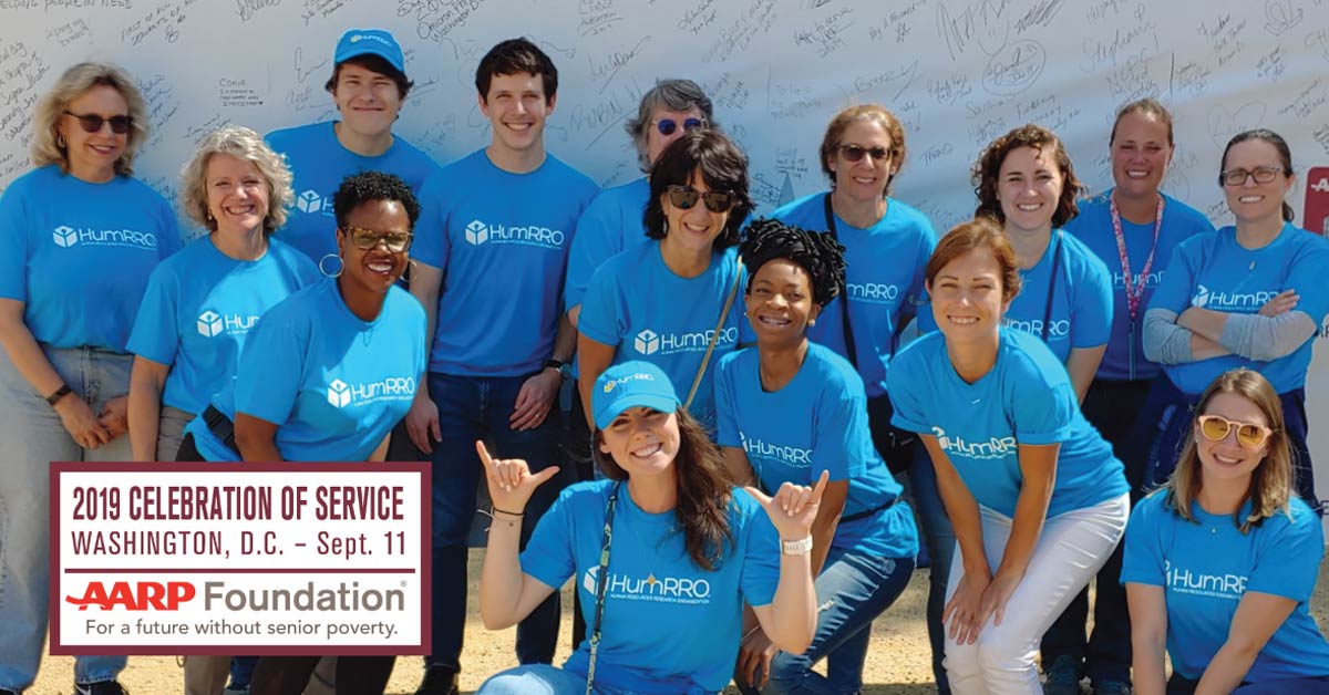 On September 11, a team of HumRRO staff from our Alexandria, Monterey, and Minneapolis offices joined thousands of volunteers on the National Mall in Washington DC to pack meals for low income senior citizens. The event, currently in its fourth year, is part of AARP’s Summer of Service to Seniors, designed to provide tangible support to the over 10 million adults across the U.S. who live each day with the crippling impact of food insecurity and senior poverty. Through this and other similar efforts, the AARP Foundation has packed and distributed over 41 million meals in recent years.